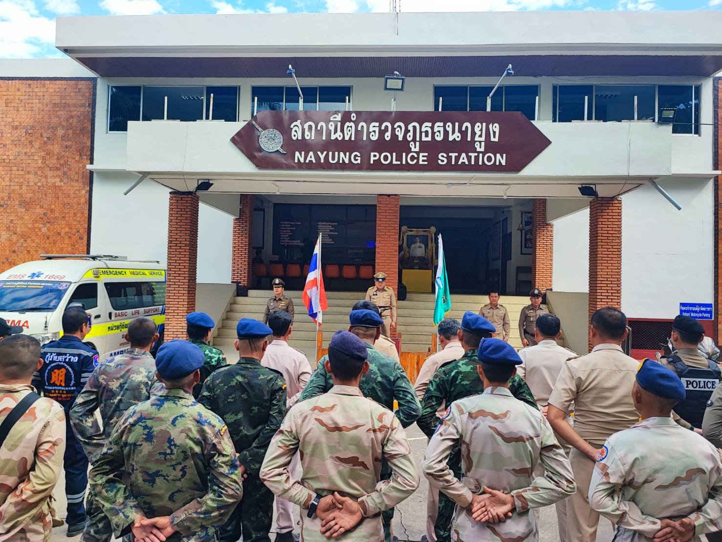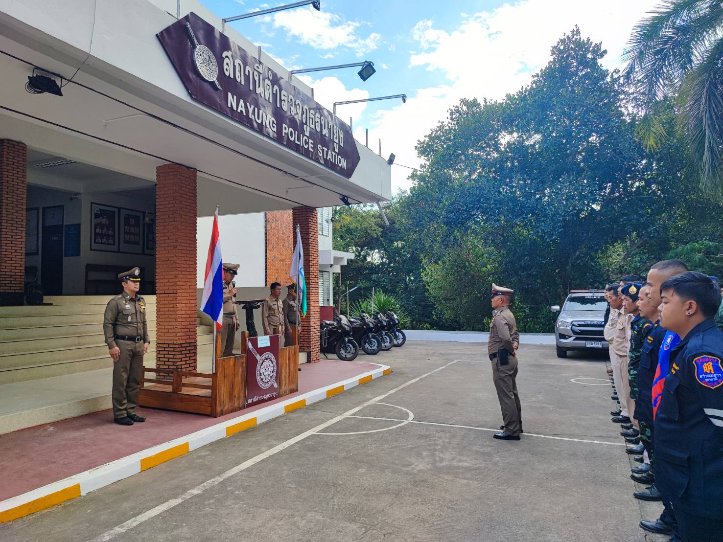 สภ.นายูง.เตรียมรถยนต์ รถจักรยานยนต์ อุปกรณ์ในการปฏิบัติหน้าที่ ร่วมกันปล่อยแถวบริเวณหน้าสถานีตำรวจภูธรนายูง ใน”โครงการ ลดความรุนแรงผู้ป่วยจิตเวชก่อเหตุคลุ้มคลั่ง” โดยมีนายอำเภอนายูง และหัวหน้าส่วนราชการร่วมเป็นประธานในการปล่อยแถว พร้อมกับบันทึกภาพรายงานผลการปฏิบัติ