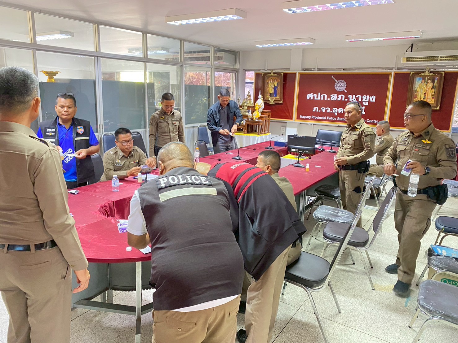 ร่วมประชุมประจำเดือน กุมภาพันธ์ 2569 เพื่อชี้แจงข้อราชการ และมอบหมายภารกิจสำคัญ และได้ทำการตรวจปัสสาวะข้าราชการตำรวจ สภ.นายูง เพื่อขับเคลื่อนการปฏิบัติงานให้เป็นไปตามนโยบายของผู้บังคับบัญชาอย่างเคร่งครัด และเตรียมความพร้อมเพื่อรอรับการตรวจจากจเร ประจำปีงบ 2569 ณ ห้องประชุม ศปก.สภ.นายูง