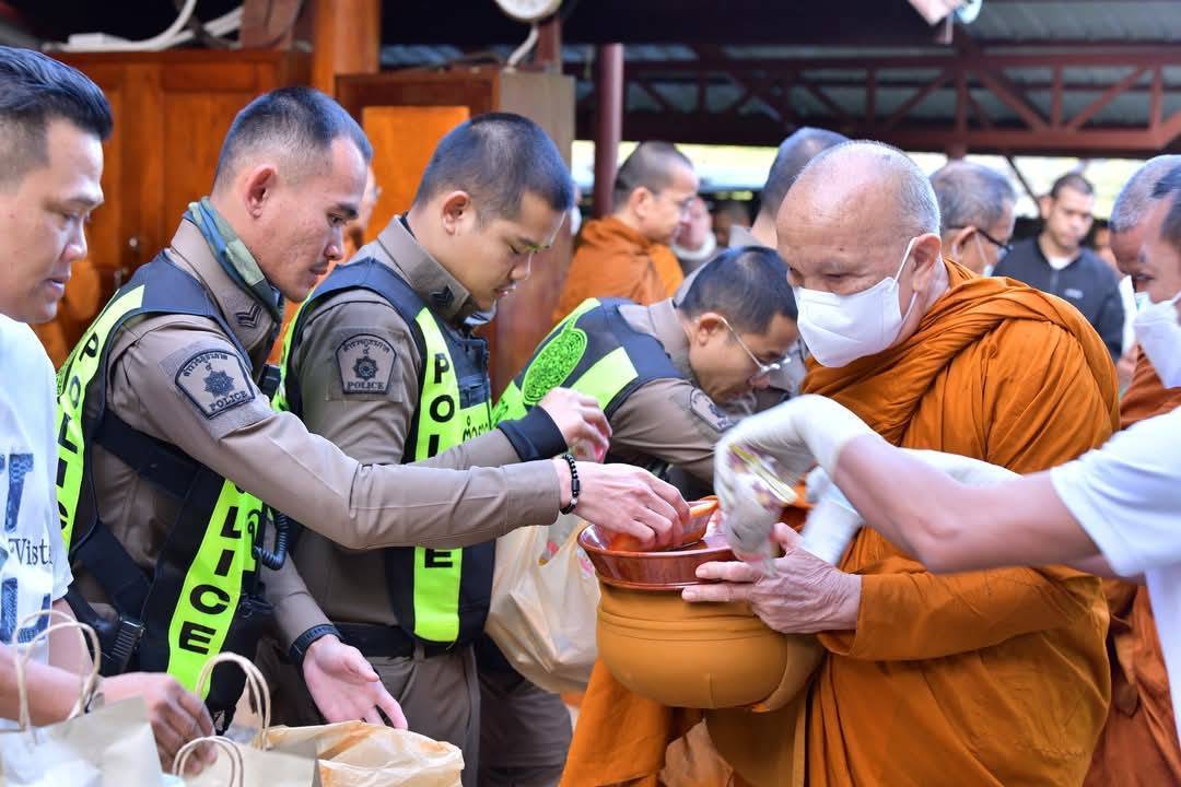 อำนวยความสะดวกประชาชนผู้ที่มาทำบุญใส่บาตรมีประชาชนมา ร่วมทำบุญในวันขึ้นปีใหม่ 2568
